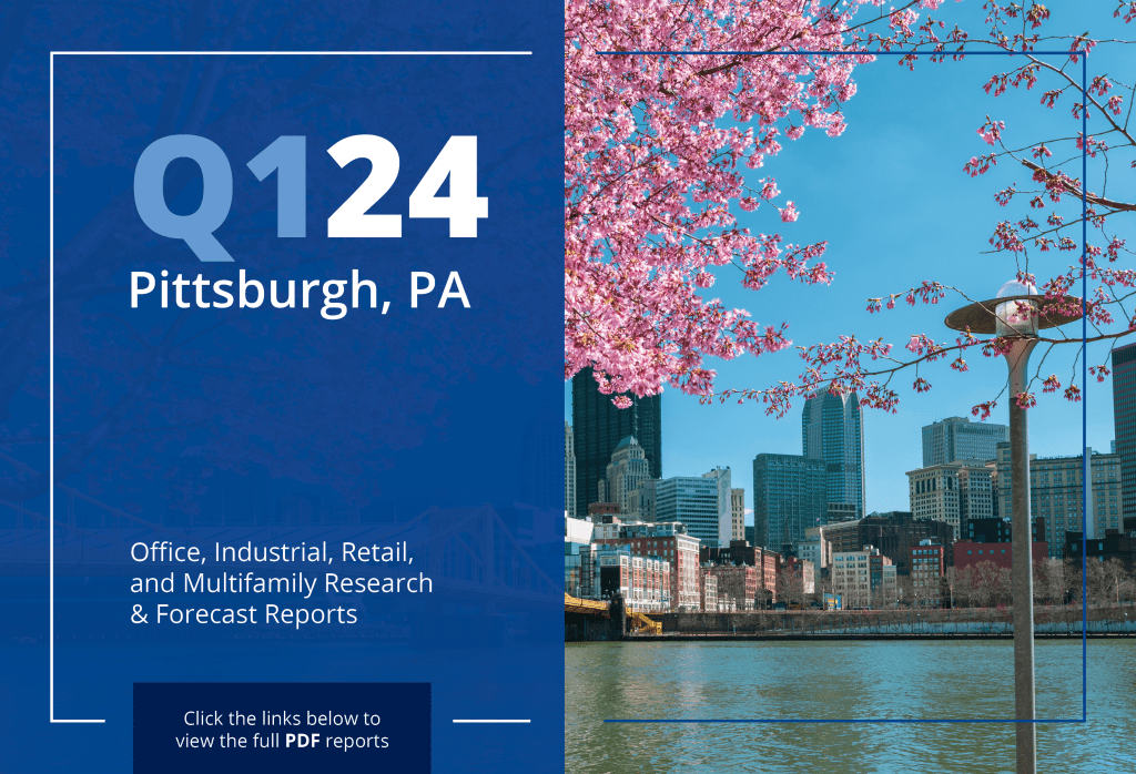 Happy Spring, Pittsburgh! We’ve compiled data from the first 3 months of 2024 in our Q1 reports, featuring market data and insights from Pittsburgh’s office, industrial, retail, and now multifamily scene. The regional office sector showed an increase in tenant activity as well as overall absorption, the industrial market displayed low vacancies and an overall increase in lease rates, the local retail sector powered through despite a dip in absorption rates, and the multifamily market saw an increase in units and net absorption.