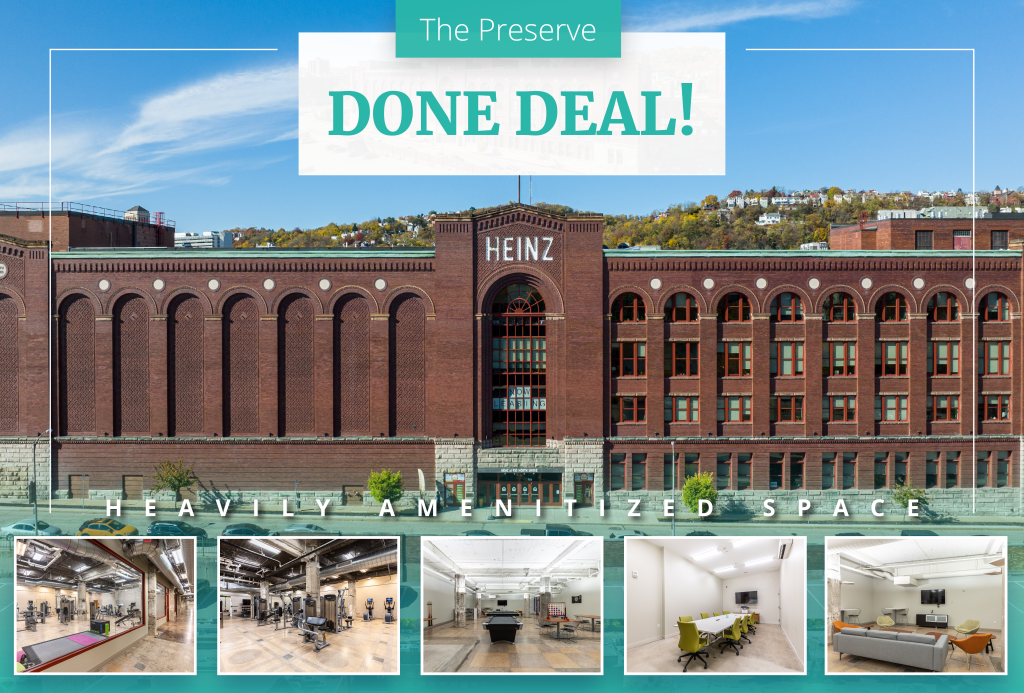 The Preserve, formerly known as Heinz 950, is an iconic building that is a testament to Pittsburgh’s past and positioning for the future. The property is in the lively Northshore neighborhood, supported by some of Pittsburgh’s strongest demographics. Originally built in 1930 as the Employee Service Building for Heinz employees, the 5-story property was converted into 151 premiere loft-style apartments. The Northshore is one of the most sought-after neighborhoods in Pittsburgh, boasting a live, work, and play environment for its residents. With a central location in the Strip District, The Preserve offers exceptional amenities such as a community fitness center, virtual video fitness studio, game room, climate-controlled garage parking, and an outdoor courtyard with grilling stations.