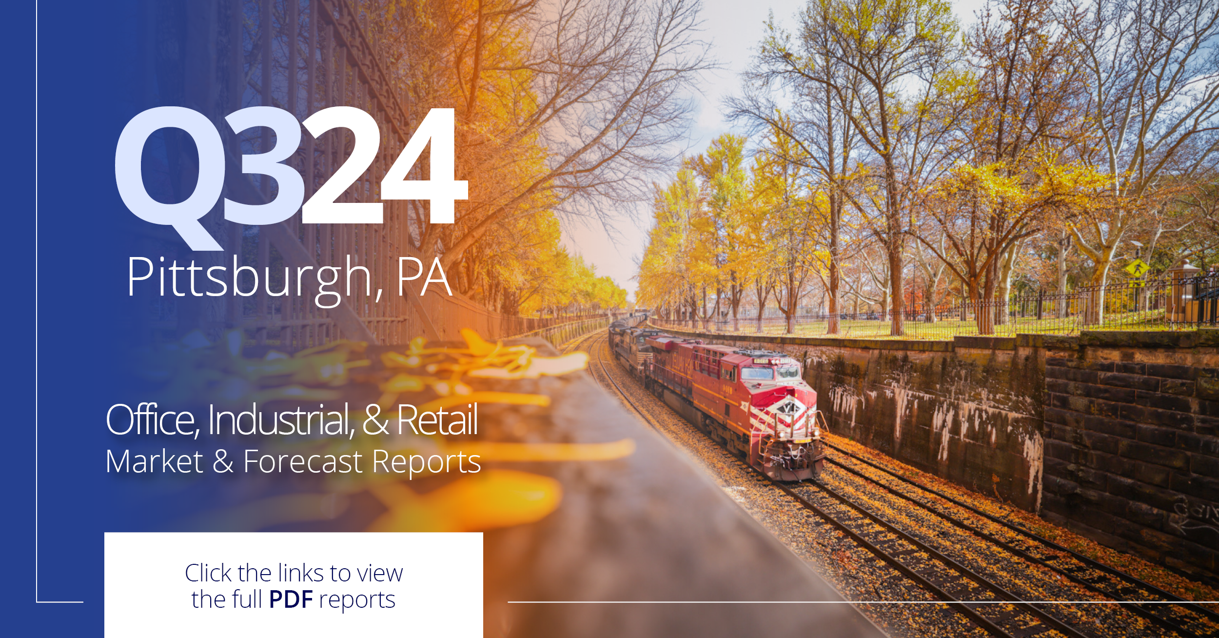 The regional office market continues to see signs of recovery amidst continued decreasing vacancy rates and a modest uptick in rental rates. Pittsburgh’s industrial sector witnessed a slight increase in both rental and vacancy rates, painting a bit of a mixed picture; meanwhile, retail enjoyed a robust third quarter, demonstrating significantly increased asking rates, net absorption, and a tiny drop in the current vacancy rate. We’re still waiting on multifamily stats to be published from our data sources, so check back in next week for an update from our capital markets guys.