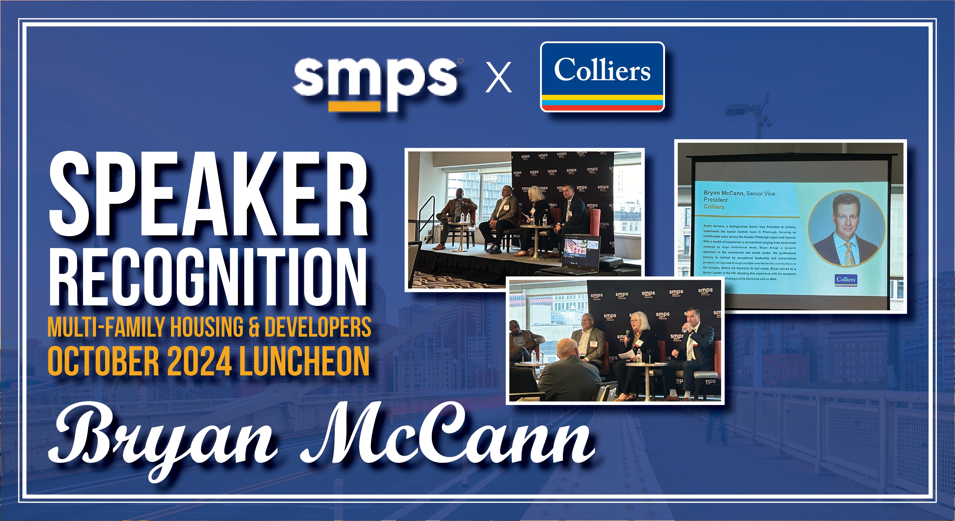 Earlier this week, Bryan McCann, Senior Vice President at the Pittsburgh office, joined a distinguished panel at the SMPS Pittsburgh Luncheon. The event, titled Multifamily Housing & Developers, was held at the Rivers Club and featured prominent speakers including Todd Reidbord, Founding Partner and President of Walnut Capital, and Lynn DeLorenzo, Partner and CRE Specialist at TARQUINCoRE. The panel discussion was moderated by Brandon Mendoza, Director of Public & Government Affairs at the Master Builders’ Association of Western PA.