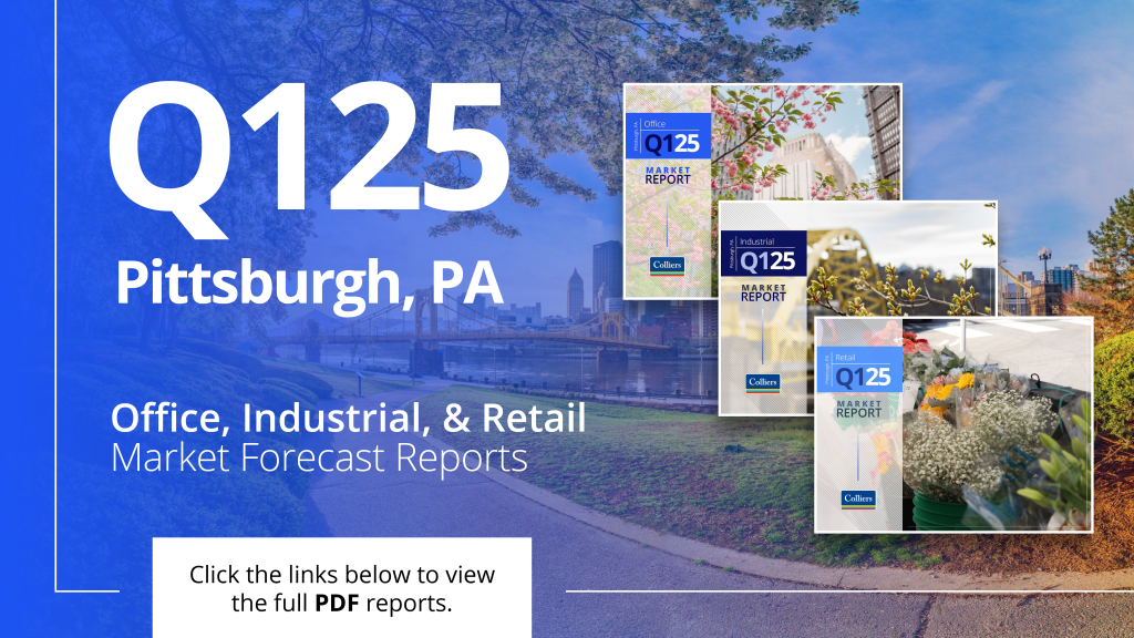 Pittsburgh’s CRE market had a mixed start to 2025. Office vacancies inched up, but some submarkets still saw growth. Industrial kept its momentum, with rental rates climbing despite a slight vacancy uptick. Retail had a bumpier ride, with rising vacancies and shifting demand mirroring general economic trends; while the market had its moments, there are still bright spots as we head into the rest of the year. We’re waiting on some data to be finalized before publishing our multifamily report, so check back next week for an update from our capital markets crew.