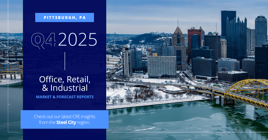 The office sector signaled continued signs of improvement as steady leasing activity and a slight increase in overall asking rates occurred, despite a minor (0.7%) increase in vacancy. Pittsburgh’s industrial scene witnessed positive net absorption for the first time since Q1 2025(!), although vacancy increased slightly and overall asking rates took a minor dip. The retail market maintained some minor fallout from recent bankruptcies and big box closures (we’ll miss you, Rite Aid and Big Lots) with an 0.6% increase in vacancy, but overall asking rates still climb upward, sitting at a current rate of $14.79 per square foot.